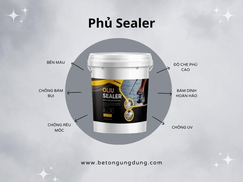 Phủ bảo vệ Oliu Selaer là một sản phẩm dành riêng cho sàn bê tông như bê tông mài, bê tông áp khuôn, terrazzo, sỏi rửa,… Lớp hoàn thiện của phủ Oliu Sealer có độ bóng vừa phải, có khả năng chống lại các tác động từ môi trường (như tia UV, nấm mốc, thời tiết,…).